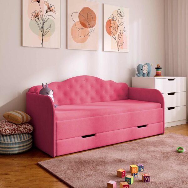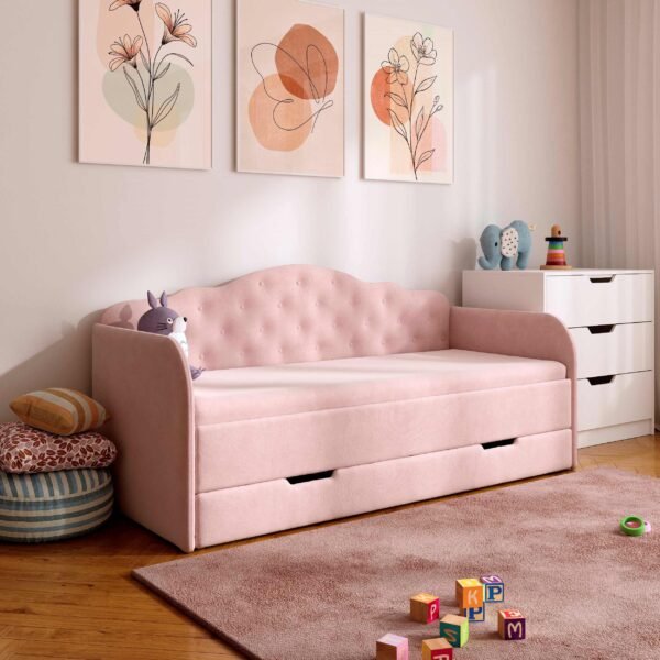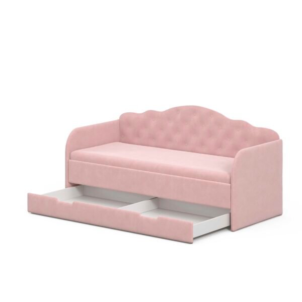 Тканина оббивки – високоякісний велюр Arteks – колекції Allure Premium в кольорі Cool grey та Rose. Також велюр Arteks – колекції Lounge в кольорі Coral
